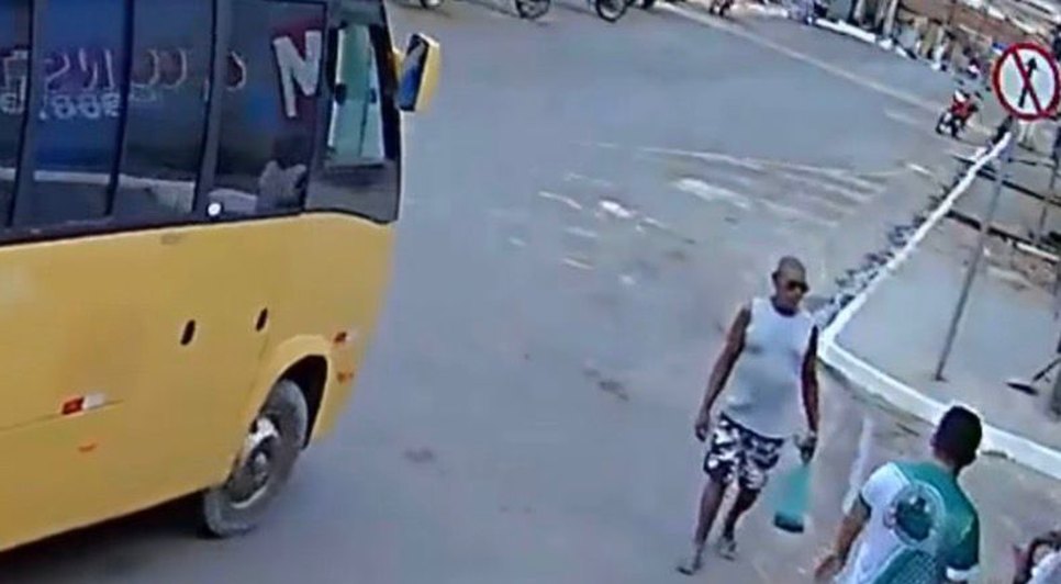 Idoso é atropelado e quase esmagado por micro-ônibus