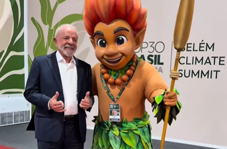 Lula aparece ao lado de Curupira, folclore brasileiro e protetor das florestas durante COP30