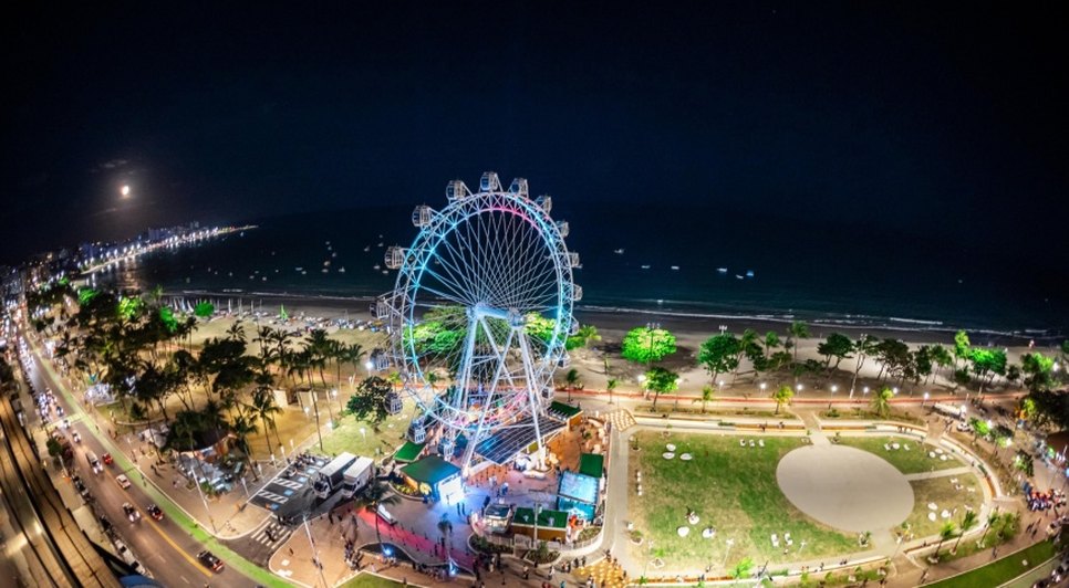Com capacidade para 1.300 visitantes por dia, a roda-gigante deve atrair de 50 a 60 mil pessoas por mês, movimentando cerca de R$ 2 milhões na economia local. São 20 cabines climatizadas, com wi-fi, bluetooth e vista panorâmica de toda a orla, com passeios de 18 minutos de duração.