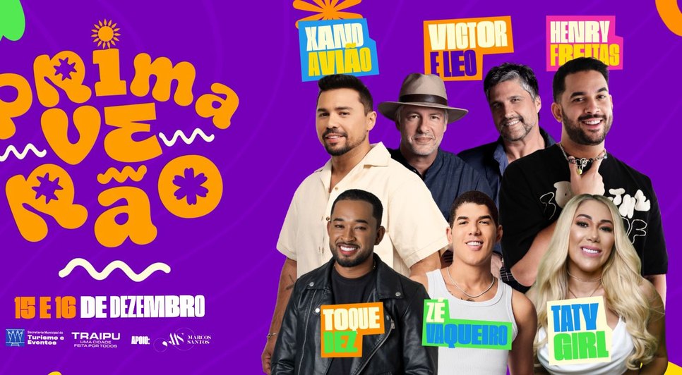 A Prefeitura de Traipu anunciou, na noite desta quinta-feira (13), a programação oficial do Primaverão 2025, evento já se consolidou como o maior festival do interior de Alagoas. Em sua 4ª edição, este ano o festival acontece nos dias 15 e 16 de dezembro, reunindo alguns dos principais artistas da música brasileira em um grande espetáculo gratuito e aberto ao público.