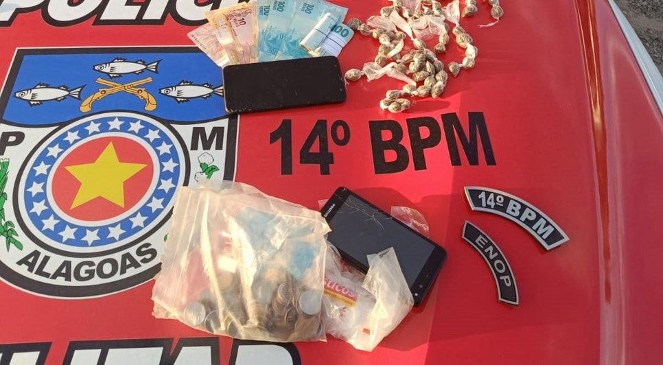 Um casal foi preso nesta segunda-feira (17) no município de Jundiá (AL) com 66 bombinhas de maconha e R$ 1 000 em espécie, em uma ação da Polícia Militar.