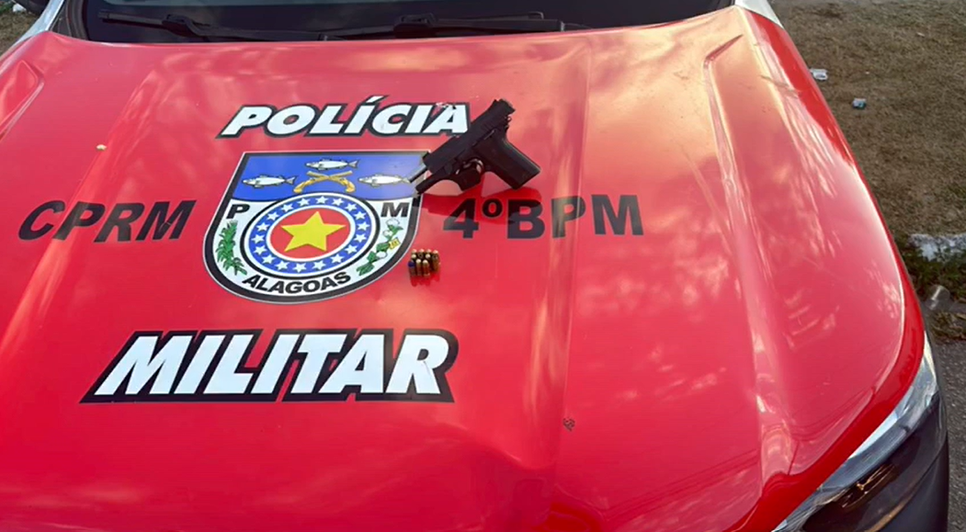 A guarnição do 4º BPM prendeu um homem com uma arma de fogo no bairro do Clima Bom. Os militares estavam realizando um ponto de bloqueio quando, durante a abordagem e busca veicular, foi encontrada uma pistola calibre .380 com várias munições.