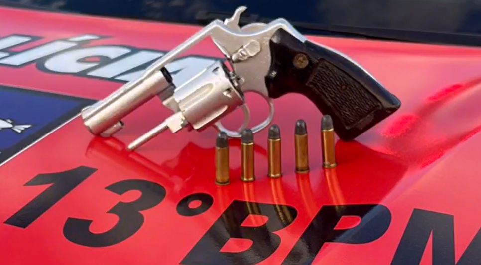 Militares do 13º Batalhão de Polícia Militar apreenderam um revólver calibre 38 durante patrulhamento na Grota das Piabas. A equipe se deparou com um grupo de indivíduos que, ao perceber a aproximação da viatura, fugiu do local, deixando a arma para trás.