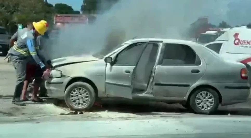 Carro com grávida pega fogo na avenida durval de góes monteiro