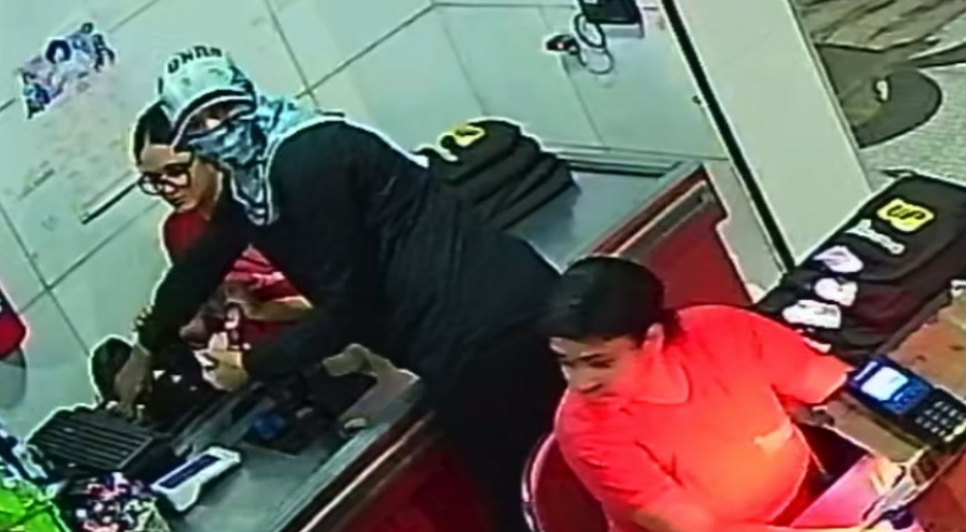 Nas imagens, um dos assaltantes vai direto ao caixa e recolhe o dinheiro, enquanto o comparsa segue para o interior do mercadinho. As funcionárias foram rendidas e obrigadas a se deitarem no chão. Em um dos vídeos, é possível ouvir as ameaças: “Deita no chão, p***. Se não, vai levar tiro todo mundo”.