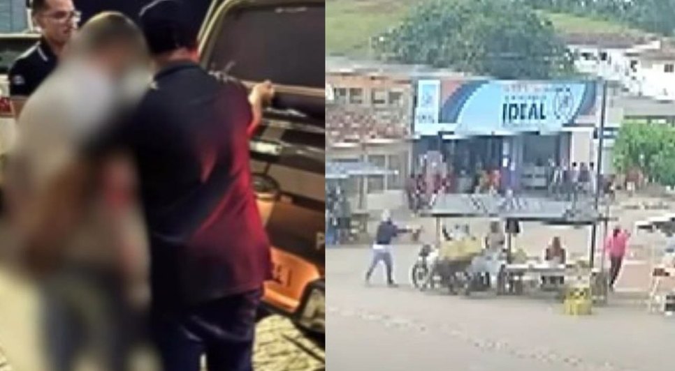 Imagens divulgadas mostram o momento do crime ocorrido em uma feira livre: um dos homens desceu de um Fiat Mobi prata, armado, e atirou no ex-vereador, enquanto o segundo suspeito, encapuzado, também saiu do veículo logo depois
