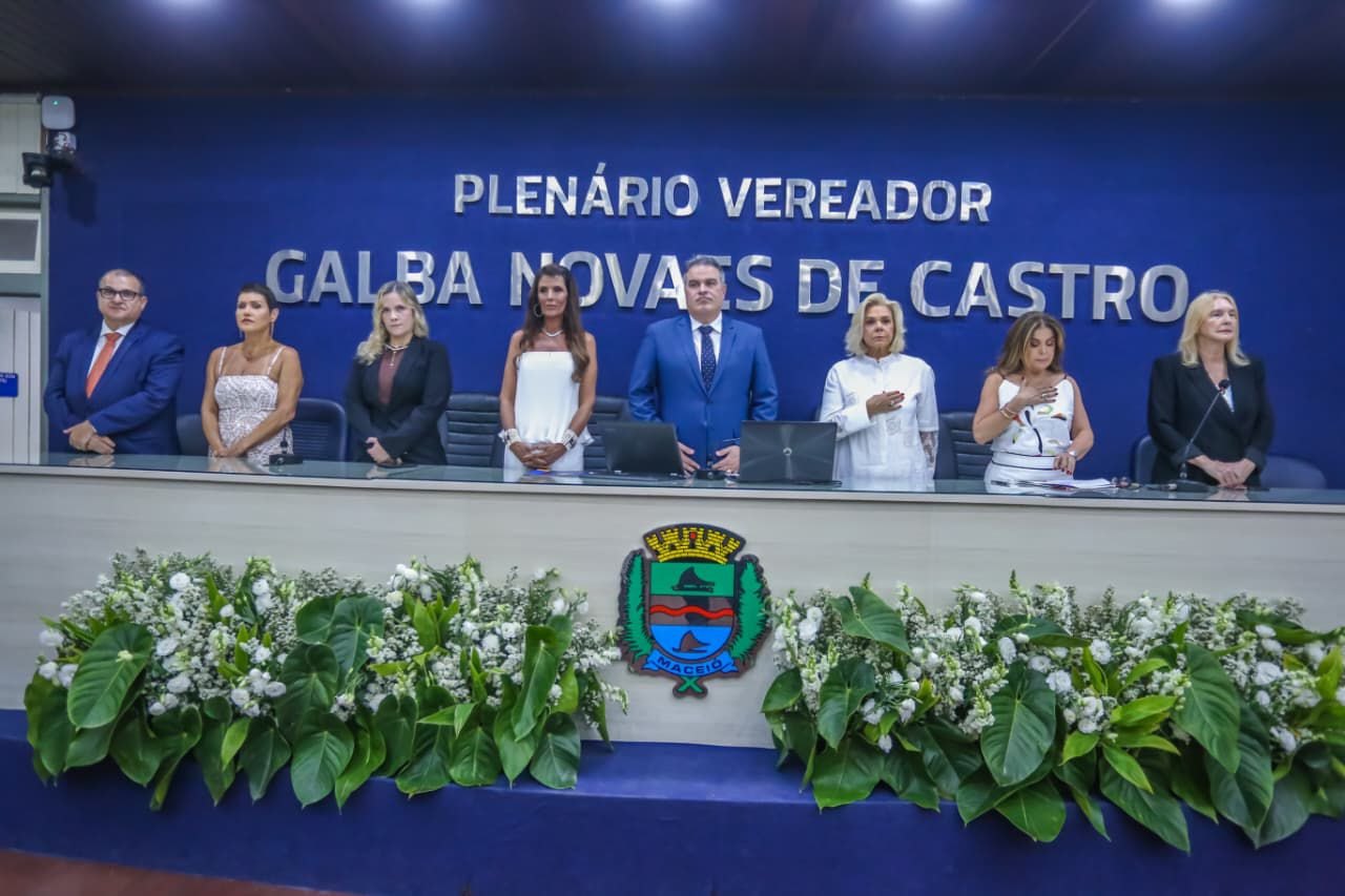 O vereador Samyr Malta entregou, nesta segunda-feira (24), na Câmara Municipal de Maceió, o Título de Cidadã Honorária a três mulheres com forte atuação na capital: Anna Paola Frade, Danielle Santoro e Cacilda Sampaio. Empresárias, comunicadoras e influenciadoras, elas foram reconhecidas pela contribuição ao desenvolvimento social, econômico e cultural de Maceió. A sessão contou ainda com a presença das vereadoras Silvania Barbosa e Jeannyne Beltrão.