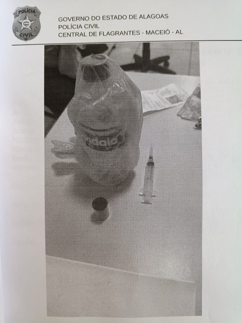 Inicialmente, ele havia confessado ter usado “chumbinho” ao manipular a garrafa de água na geladeira da ex. Após a prisão, os policiais encontraram uma seringa e um frasco com a substância na posse dele.