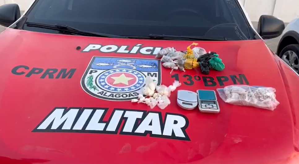 A Guardiã II do 13º Batalhão de Polícia Militar apreendeu porções de maconha, cocaína, crack e uma balança de precisão na Vila Emater, em Jacarecica. Os suspeitos fugiram ao perceber a chegada da equipe e deixaram o material utilizado no tráfico.