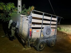 Segundo o boletim da Polícia Militar, os agentes encontraram um Fiat Uno parado em atitude suspeita próximo ao Sítio Mundo Novo. No local, dois homens apresentaram versões desencontradas sobre o motivo de estarem ali, enquanto um terceiro foi localizado escondido no mato com um alicate de cortar arames. Dentro do veículo, a PM encontrou cordas, cabrestos, ferramentas e objetos usados para condução de gado.