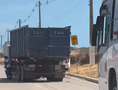 Colisão entre caçamba e ônibus trava trânsito na Rota do Mar