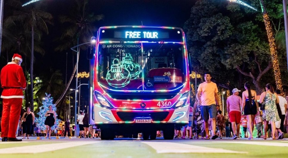 Os ônibus gratuitos do Free Tour Natal Massayó já estão circulando pela orla marítima de Maceió, levando moradores e turistas para conhecer a decoração natalina da capital. A iniciativa é do Departamento Municipal de Transportes e Trânsito (DMTT) e garante acesso fácil aos principais pontos iluminados para o Natal.
