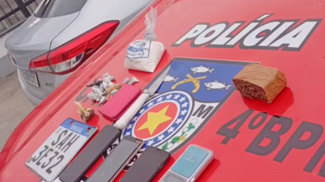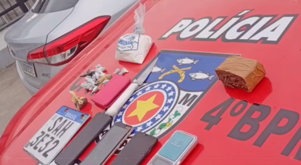 Na abordagem, foram encontrados maconha, cocaína, uma placa de moto com registro de roubo e aparelhos celulares. Com base nas evidências, os três indivíduos receberam voz de prisão e foram encaminhados à Central de Flagrantes para responder pelos crimes de tráfico de drogas e receptação.