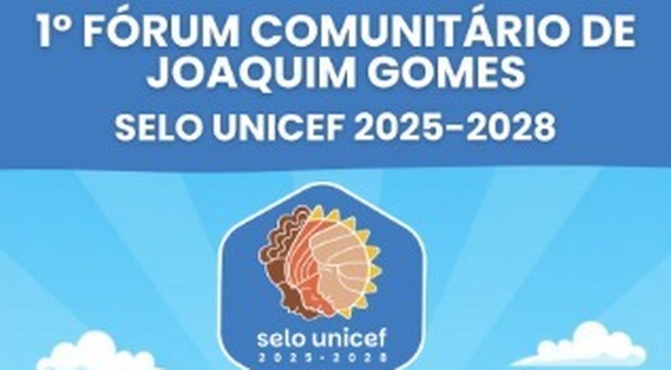 O município de Joaquim Gomes realiza, nesta quarta-feira (10), o 1º Fórum Comunitário do Selo UNICEF (2025-2028), etapa obrigatória do processo de certificação conduzido pelo Fundo das Nações Unidas para a Infância. O encontro será na EMEB Maria do Carmo de Oliveira Melo, no bairro da Casal, reunindo representantes da gestão municipal, sociedade civil, estudantes e órgãos de controle social.