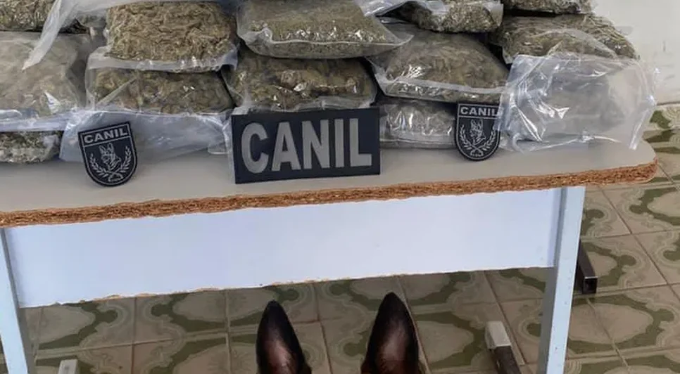 A Polícia Militar apreendeu 10,3 kg de maconha na manhã desta quinta-feira (11) durante a abordagem a um ônibus na AL-110, no Sítio Laranjal, em Arapiraca. O entorpecente estava em uma mala azul sem identificação, localizada com apoio do cão farejador Kaos, em ação conjunta entre o Canil, a Força-Tarefa Canil do 3º BPM e a Polícia Rodoviária Federal (PRF).