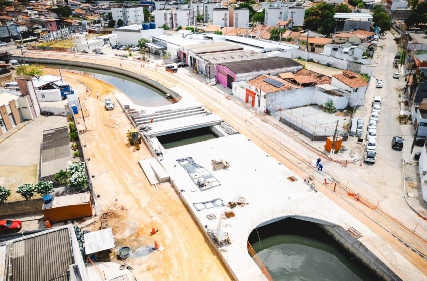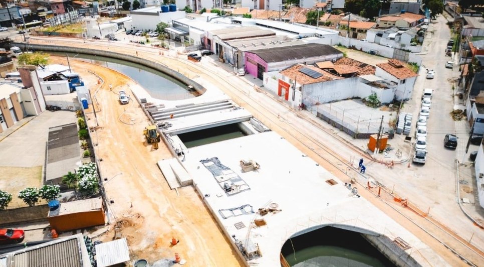 Atualmente, as travessias sobre o riacho estão na fase de concretagem das lajes, com avanço físico de 75%, servindo de base para os futuros espaços de convivência. Já os mirantes tiveram a etapa de fundação concluída, assim como a implantação do novo coletor-tronco de drenagem, projetado para grandes volumes de água da chuva.