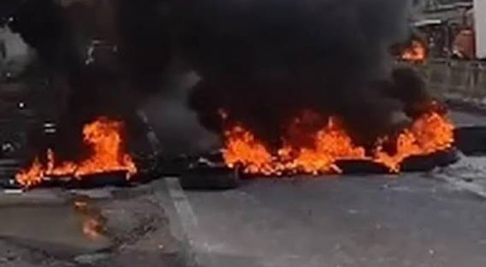 Com pneus e outros objetos, os manifestantes bloquearam a pista como forma de protesto.