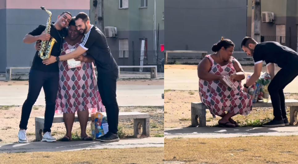 Ao receber as doações, a mulher pergunta quem havia mandado entregar os alimentos, ao que recebe como resposta: “foi Deus quem mandou entregar”. A resposta provoca forte emoção, e a mulher não consegue conter as lágrimas diante do gesto inesperado.
