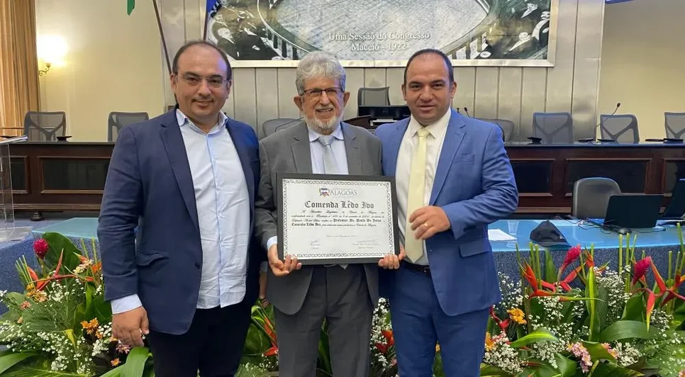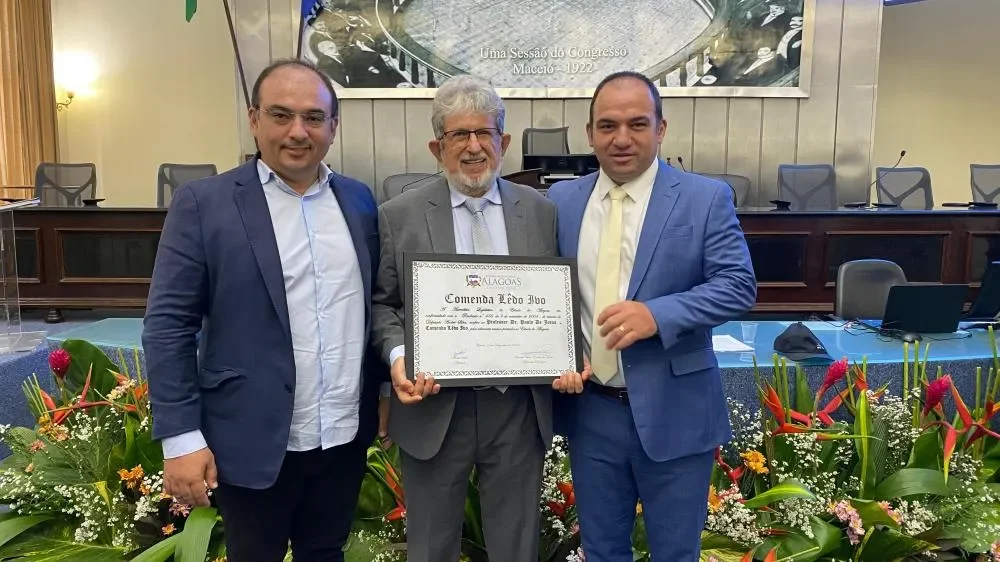 Prestigiando um momento de grande significado para Junqueiro, o prefeito Leandro Silva esteve presente, na Assembleia Legislativa de Alagoas, na Sessão Solene que concedeu a Comenda Lêdo Ivo ao Professor Doutor Paulo de Jesus.