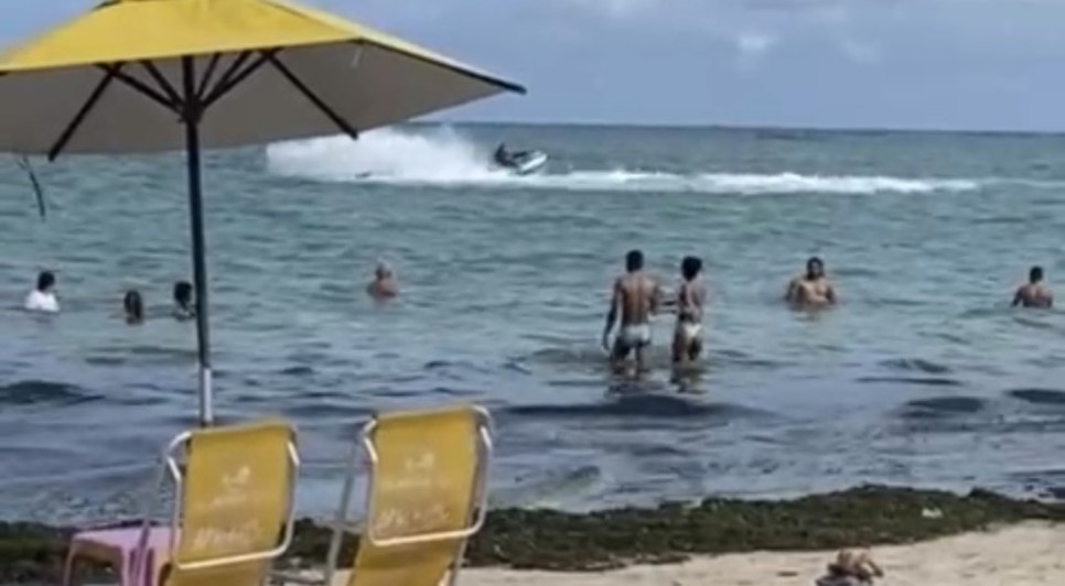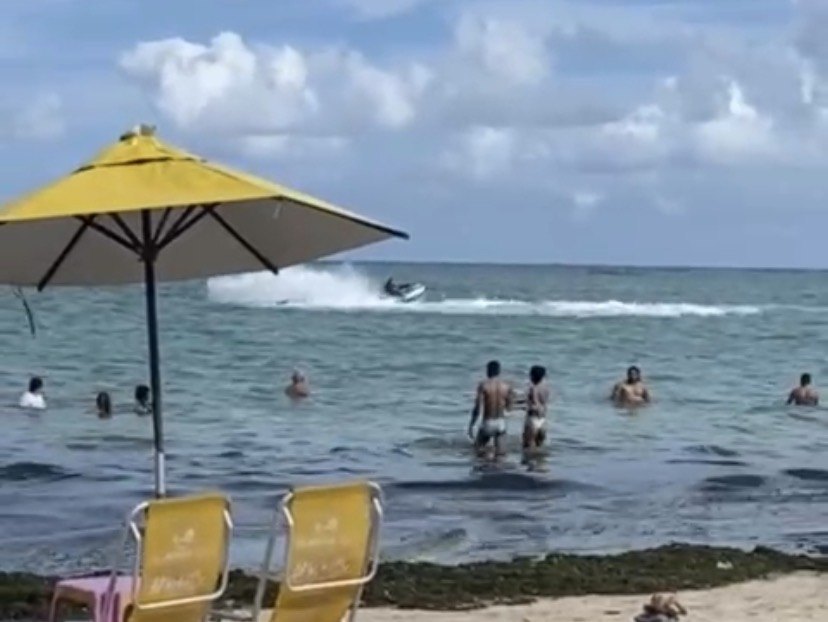 Imagens feitas por testemunhas mostram a embarcação circulando em alta velocidade e passando perto dos banhistas, o que gerou risco de acidente. A prática é proibida em áreas destinadas ao banho, justamente para evitar colisões e ferimentos.