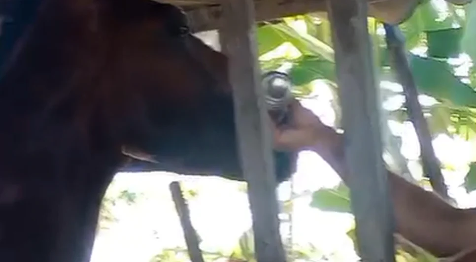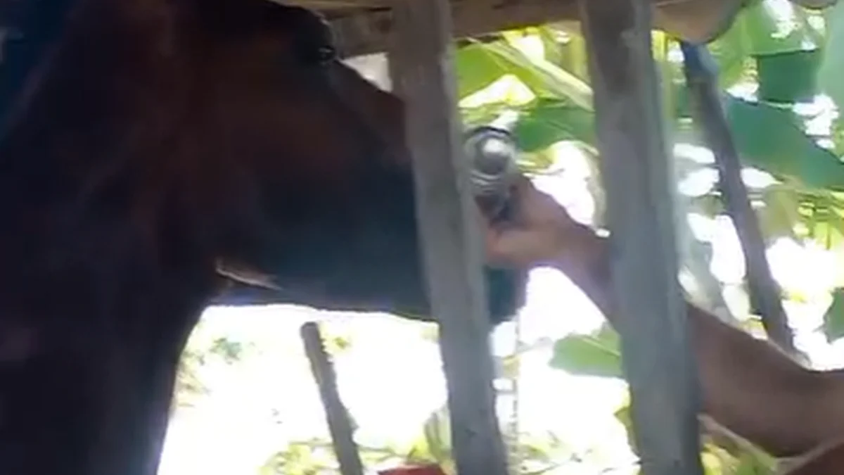 No vídeo, o animal aparece consumindo a bebida oferecida pelo homem. Pessoas que presenciaram a cena denunciaram o caso por maus-tratos.