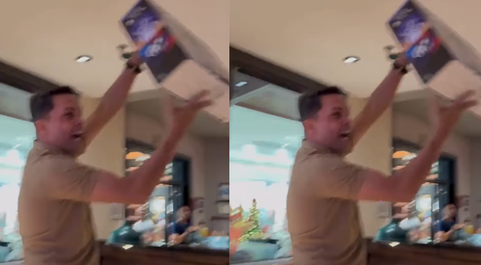 Pai ganha playstation 5 de presente de Natal e comemora em restaurante lotado