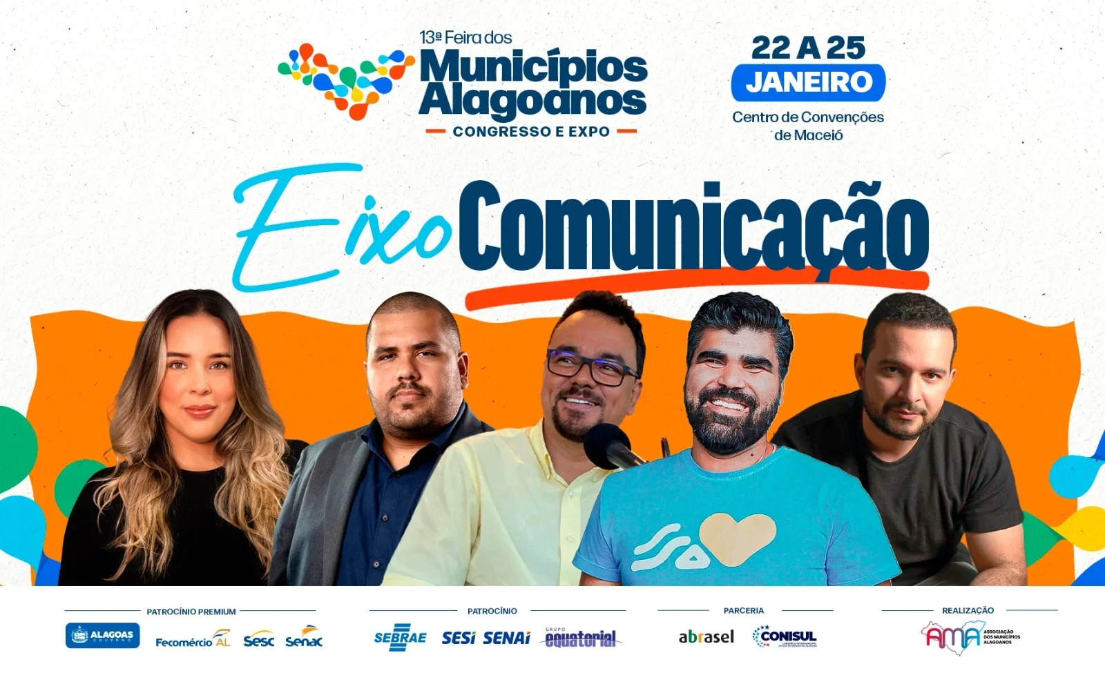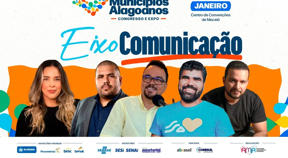 A comunicação pública e política será um dos eixos centrais da Feira dos Municípios Alagoanos – Congresso e Expo 2026, com programação especial voltada a comunicadores, gestores públicos, assessores de imprensa e profissionais do marketing político. O Eixo Comunicação acontece no dia 22 de janeiro de 2026 e reunirá palestras e uma mesa-redonda com nomes de referência no cenário estadual e nacional.