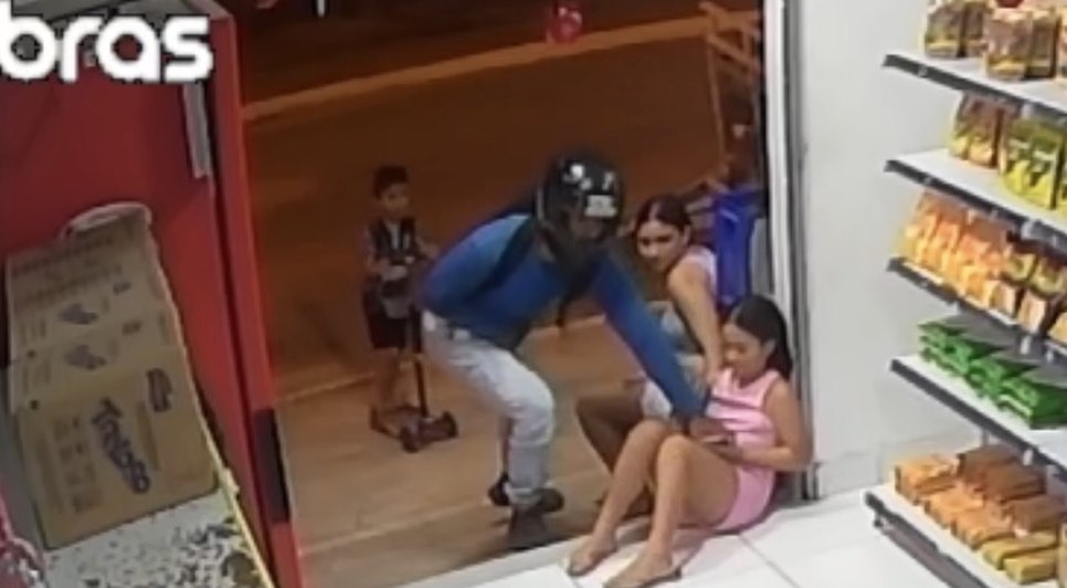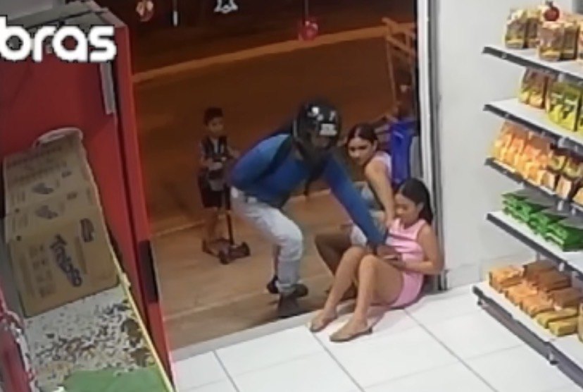 Nas imagens, é possível ver o suspeito se aproximando rapidamente e tomando o celular da mulher. Em seguida, ele também rouba, de forma agressiva, o aparelho de uma criança que estava próxima no local. A ação dura poucos segundos. Após o crime, o assaltante foge na motocicleta. Até o momento, não há informações sobre a identificação ou prisão do suspeito. O caso deve ser investigado pela Polícia Civil.Receba notícias em seu WhatsApp