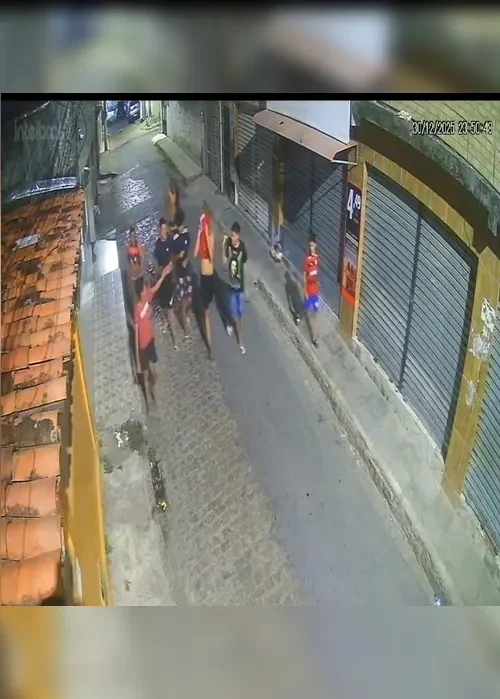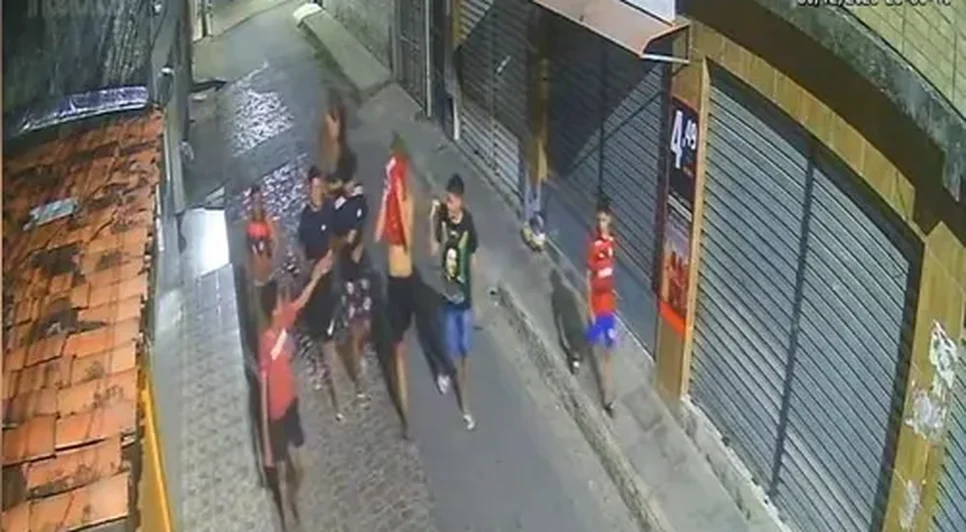 Nas imagens, é possível ver pelo menos oito adolescentes reunidos na região conhecida como rua da Caixa d’Água. Em seguida, o grupo segue em direção a um estabelecimento comercial, onde pratica o vandalismo. Um dos suspeitos chega a chutar a porta do imóvel antes da fuga.