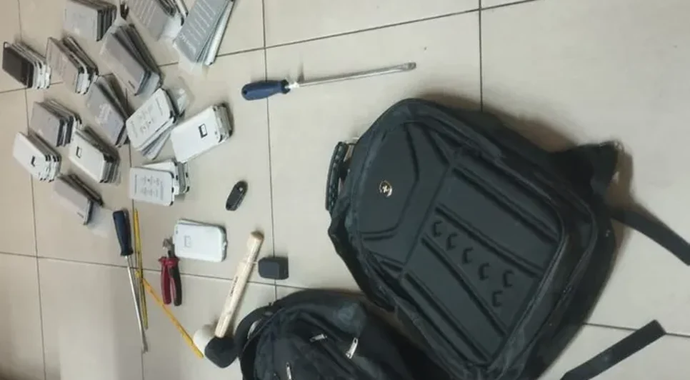Na mochila da loja estavam os celulares, uma bateria portátil e um carregador. Já na mochila do suspeito, os militares apreenderam roupas, ferramentas usadas no arrombamento, joias, um smartwatch e um telefone celular. Ele também admitiu ter arrombado a porta do escritório, danificando parte da parede onde ficam os cofres, e disse que a calça e a camisa que vestia haviam sido furtadas do próprio estabelecimento.