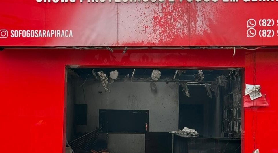 Uma loja de fogos de artifício pegou fogo no bairro Cacimbas, em Arapiraca, provocando várias explosões e assustando moradores da região. O estabelecimento fica em uma área central do bairro, próximo a uma unidade do supermercado GBarbosa. Imagens divulgadas pelo Corpo de Bombeiros mostram como ficou o local após o incêndio, evidenciando a destruição causada pelas chamas.