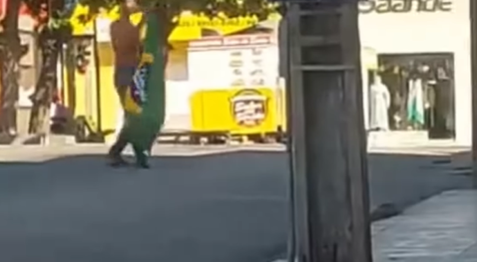 No vídeo, o suspeito aparece exaltado e, após retirar a bandeira, passa a utilizá-la como uma capa, enquanto profere frases desconexas e ofensivas, como “Tapera não é do Brasil, Tapera é do Satanás” e “Tapera está destruindo nós”.