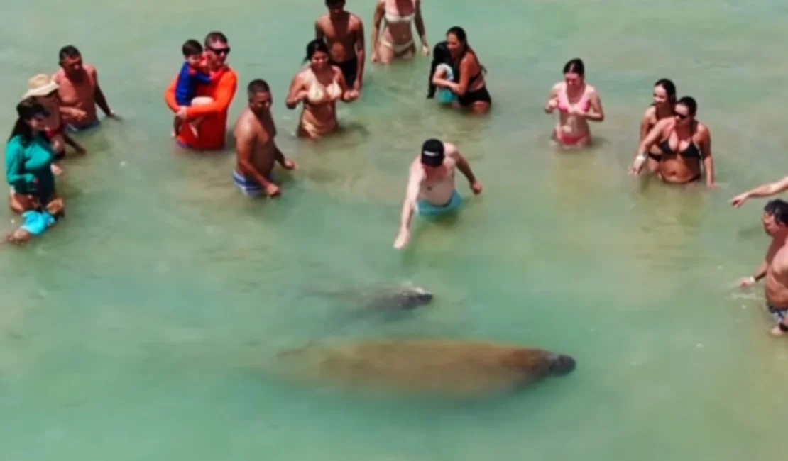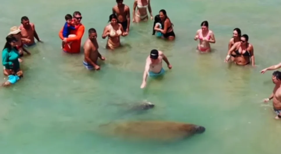 Banhistas são flagrados cercando peixes-boi em praia de Alagoas