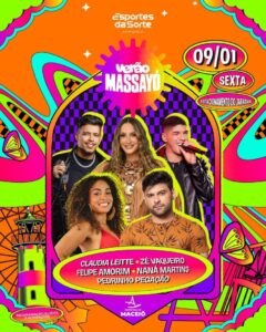 O Verão Massayó 2026 começa nesta sexta-feira (9), no Estacionamento do Jaraguá, e deve movimentar a orla de Maceió nos próximos dias. O evento segue nos dias 10, 11, 16, 17 e 18 de janeiro.