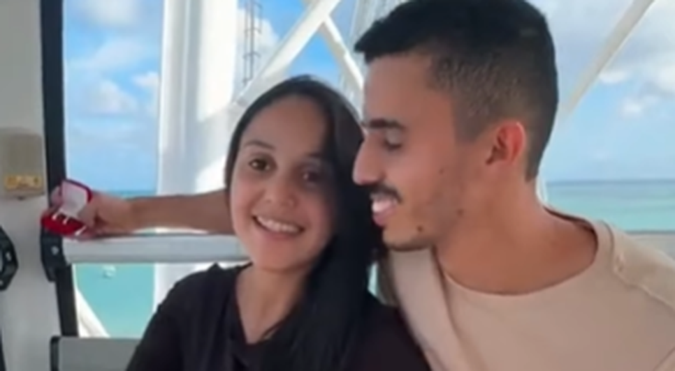 No vídeo publicado no TikTok por Isabela Alanda, o casal aparece aproveitando o passeio quando o rapaz pede para tirar uma foto. Enquanto se posiciona para o registro, ele aproveita a distração da companheira e coloca discretamente um anel ao lado dela, transformando o passeio em um pedido de namoro especial.