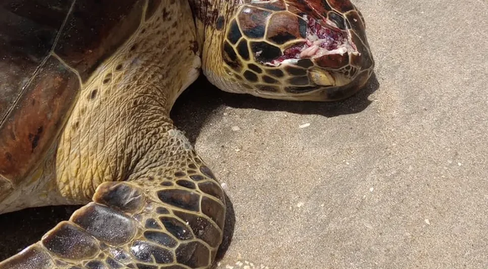 Tartaruga-verde é encontrada com crânio esmagado na Praia de Peroba, em Maragogi