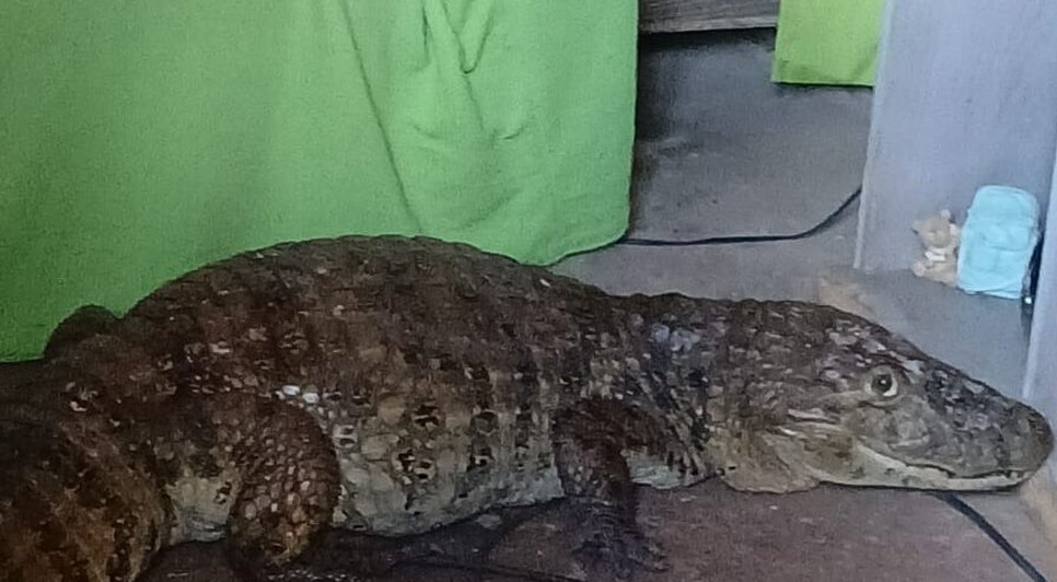 Jacaré invade casa e moradores se unem para tirar o ''bichão'' da sala no Petrópolis