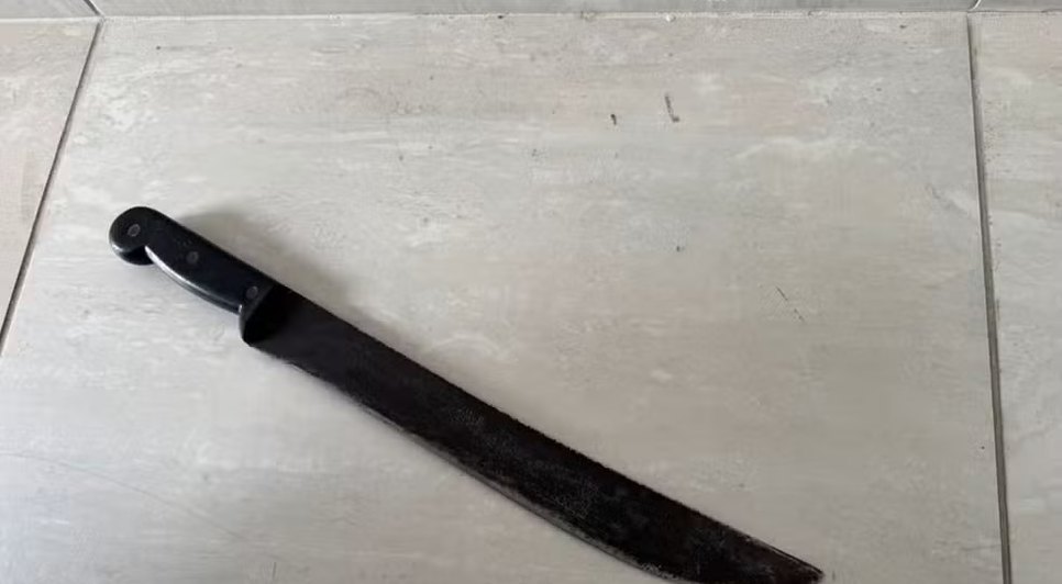 O facão utilizado na tentativa de assalto foi apreendido. As vítimas prestaram depoimento e o caso segue sob investigação da Polícia Civil.