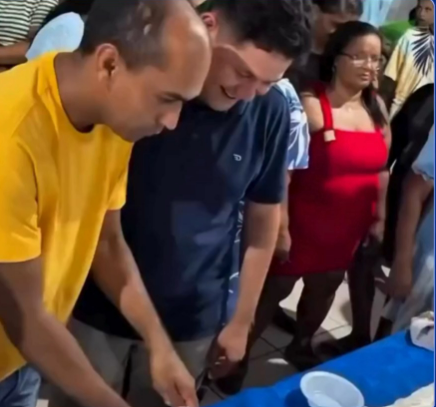 Um registro do aniversário da paróquia de Miguel Alves está dando o que falar nas redes sociais e entre os moradores da cidade. Durante a celebração, um momento inusitado acabou chamando atenção de quem estava presente no momento, nas imagens registradas, é possível ver o Secretário de Habitação retirando, de forma inesperada, a colher que o padre estava utilizando, diretamente do prato, para servir o prefeito presente no evento.