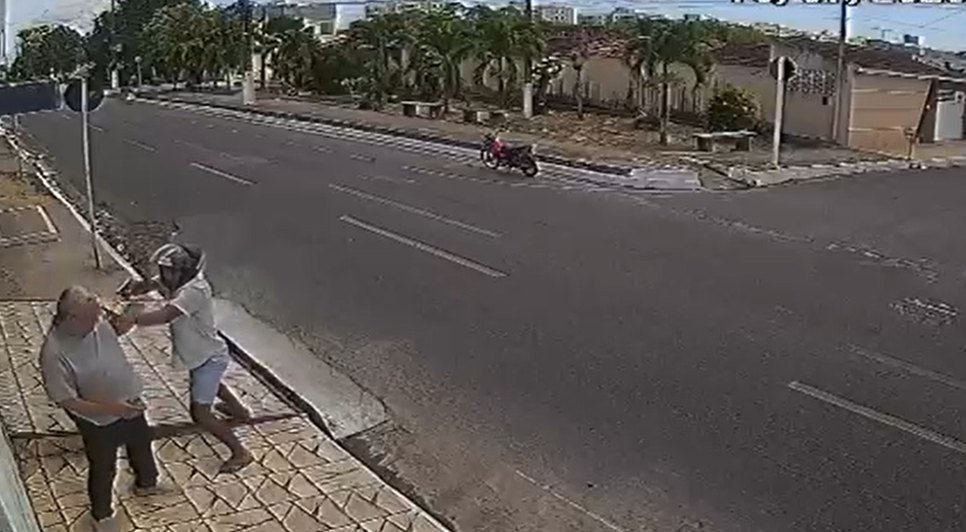 Um vídeo que circula nas redes sociais mostra o momento em que um senhor é assaltado por um homem em uma motocicleta no Village Campestre, parte alta de Maceió.