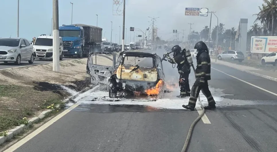 Fiat Uno pega fogo na Avenida Assis Chateaubriand, em Maceió