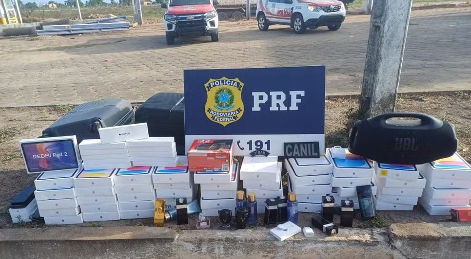 Entre os objetos apreendidos estão celulares, relógios, tablets, eletrônicos e perfumes, incluindo modelos como iPhone 14 Pro Max, iPhone 16 Pro Max, iPhone 17, Apple Watch e iPads A16. Todo o material foi encaminhado à Superintendência da Polícia Federal, no bairro do Jaraguá, em Maceió.