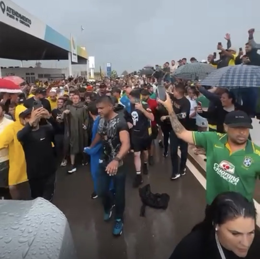 Imagens divulgadas nas redes sociais do parlamentar mostram centenas de apoiadores reunidos na entrada da cidade, mesmo sob chuva. Manifestantes de diferentes regiões acompanharam o percurso e se juntaram ao longo do trajeto.