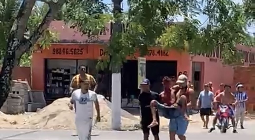 Nas imagens, é possível ver um torcedor, bastante machucado , enquanto é carregado nos braços por outros torcedores. Segundo informações preliminares, o torcedor teve sua moto quebrada e foi brutalmente espancada por torcedores de uma torcida rival.