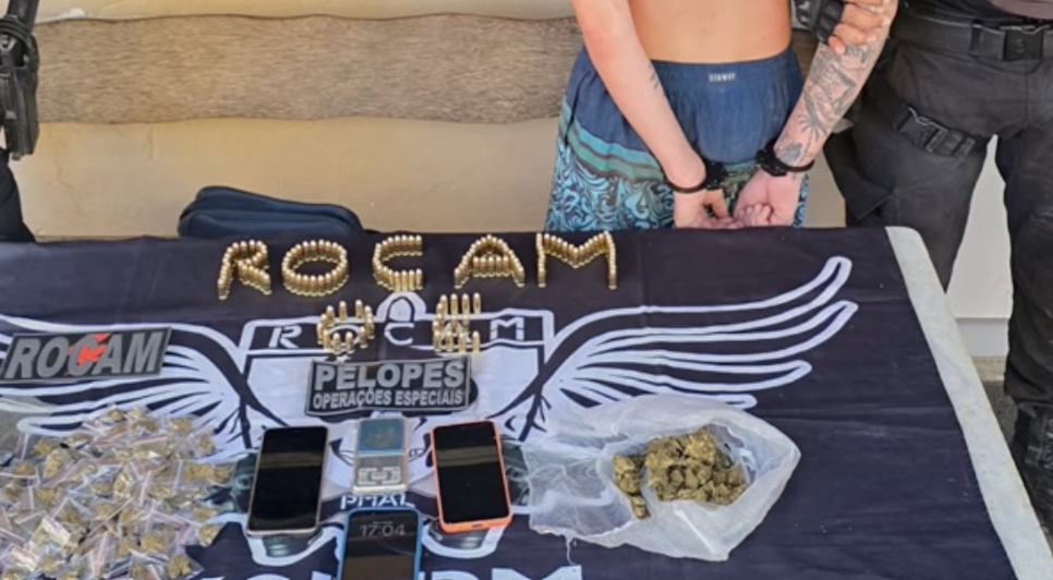 Durante a abordagem, os militares apreenderam grandes quantidades de drogas e munições em posse do suspeito. Ele recebeu voz de prisão e foi encaminhado à delegacia, onde foi apresentado à Justiça para os procedimentos legais cabíveis.