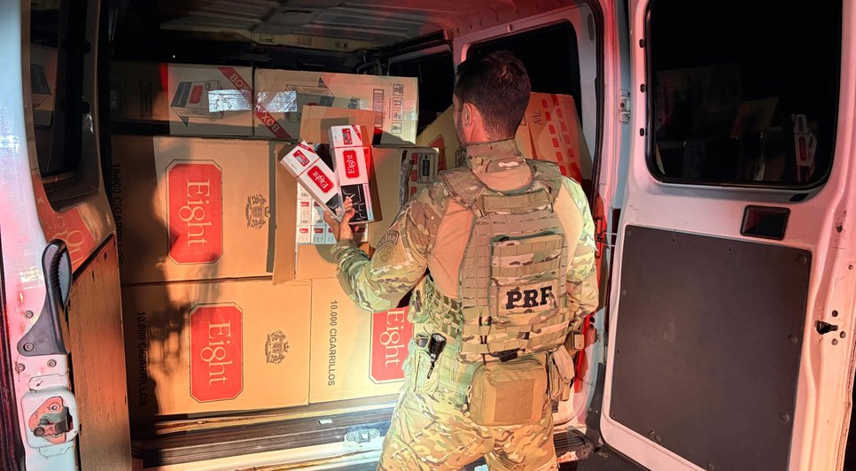 A apreensão ocorreu por volta das 21h, após uma equipe da PRF dar ordem de parada a um veículo. Durante a vistoria, os policiais encontraram 50 caixas de cigarros, totalizando meio milhão de unidades do produto ilegal.