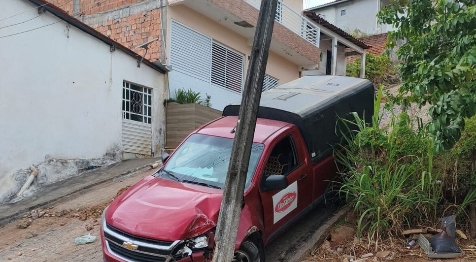 Um acidente foi registrado na Rua Capitão Mafra, em Água Branca, no Sertão de Alagoas, nesta terça-feira (27). Um veículo modelo Chevrolet S10 vermelho apresentou falha nos freios e acabou colidindo contra um poste, causando danos ao veículo e à rede elétrica local.