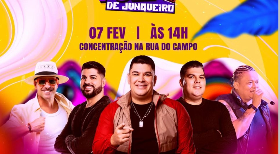 O arrastão das prévias de Carnaval de Junqueiro acontecerá no dia 7 de fevereiro, a partir das 14h, com concentração na Rua do Campo. O evento promete reunir os junqueirenses em um clima de muita animação, alegria e celebração.
