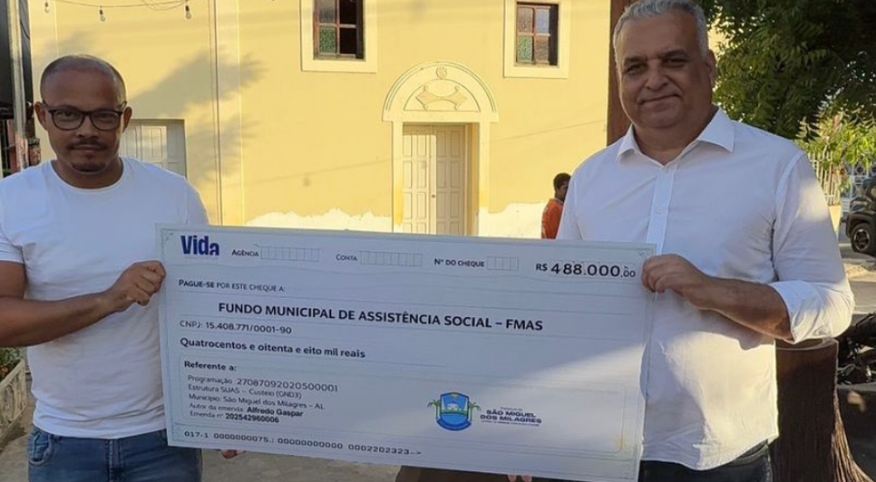 Em São Miguel dos Milagres, o parlamentar participou da entrega simbólica de uma emenda no valor de R$ 488 mil, destinada ao desenvolvimento social do município. Os recursos foram encaminhados ao Fundo Municipal de assistência social e serão executados pela Prefeitura. A solenidade ocorreu na Praça Santo Antônio.