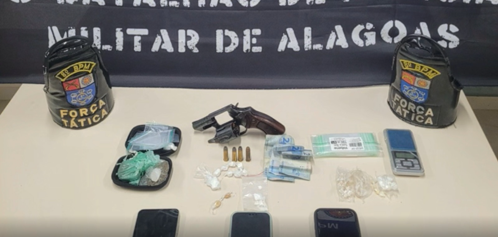 A Polícia Miliar de Alagoas (PMAL), atráves da Força Tática do 8º Batalhão, prendeu nesta última segunda-feira (03), três homens por tráfico de drogas no município do Pilar. A operação foi realizada dentro de uma região de mata e de difícil acesso, onde os militares avistaram aproximadamente sete suspeitos portando armas de fogo e realizando a venda de drogas.